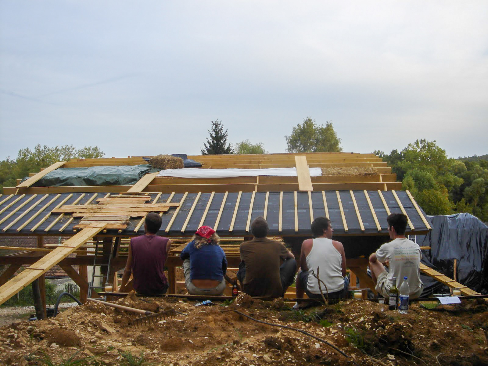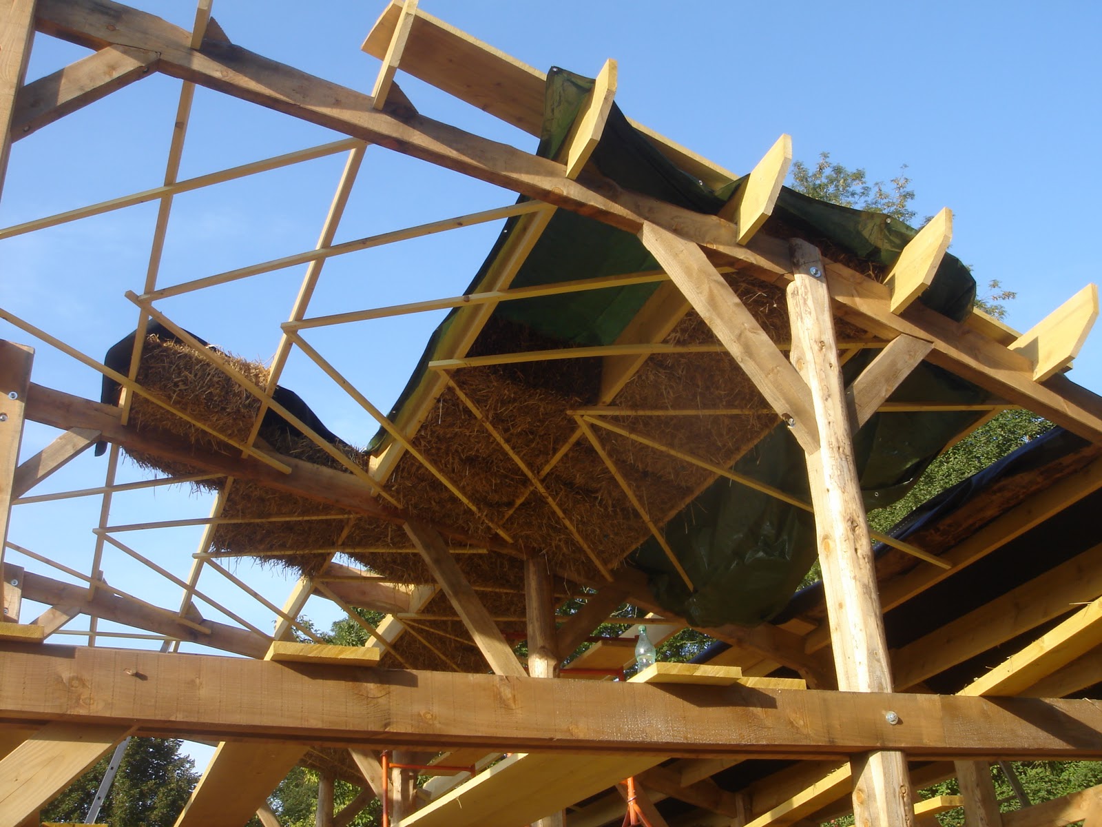 Phase 1 (Eté 2011) : Charpente et isolation couverture en botte de paille