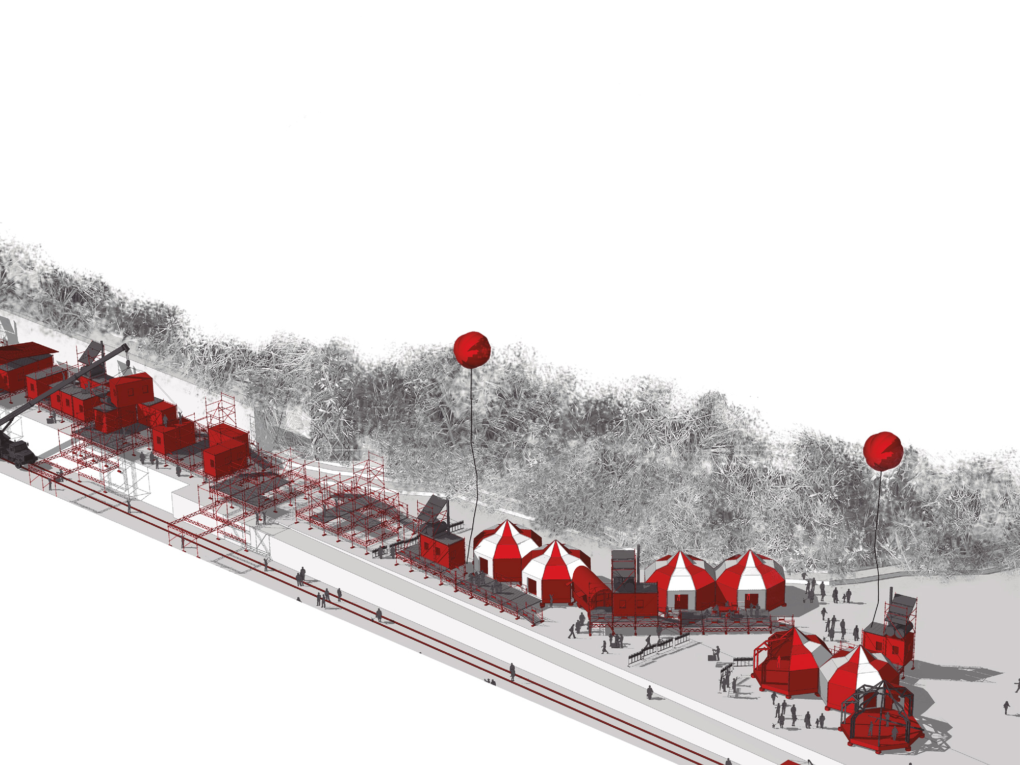 First of all, our project “Saga-Cité” has been chosen to be one of the 10 laureates in the “Paris de l’Hospitalité (Hospitality of Paris) competition, an international competition of art and architecture for the creation of a mobile shelter for the homeless in Paris. Our answer to this consultation initiated by the PEROU – Exploration Pole of Urban Resources – and the Enfants du Canal  (the Canal Children) takes nomadism as the founding idea of a shelter which brings to life many of Paris’ disused sites, to the benefit of those who only know its pavements. Using the circus as a theme, Saga-Cité is made of habitations and collective spaces spread across a gathering of hoardings, tents and wood modules. The project puts emphasis on the comfort of its users and a respect for the environment by using recycled insulating materials, energy-providing turrets and by treating wastewater. These subjects are a cause close to our hearts and we are very proud to see them given recognition in this competition.