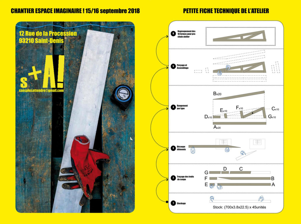 Nous construisons un kiosque solidaire et un atelier de fabrication sur une friche à Saint-Denis qui accueille une dizaine d’associations et de projets culturels : l ‘Espace Imaginaire.