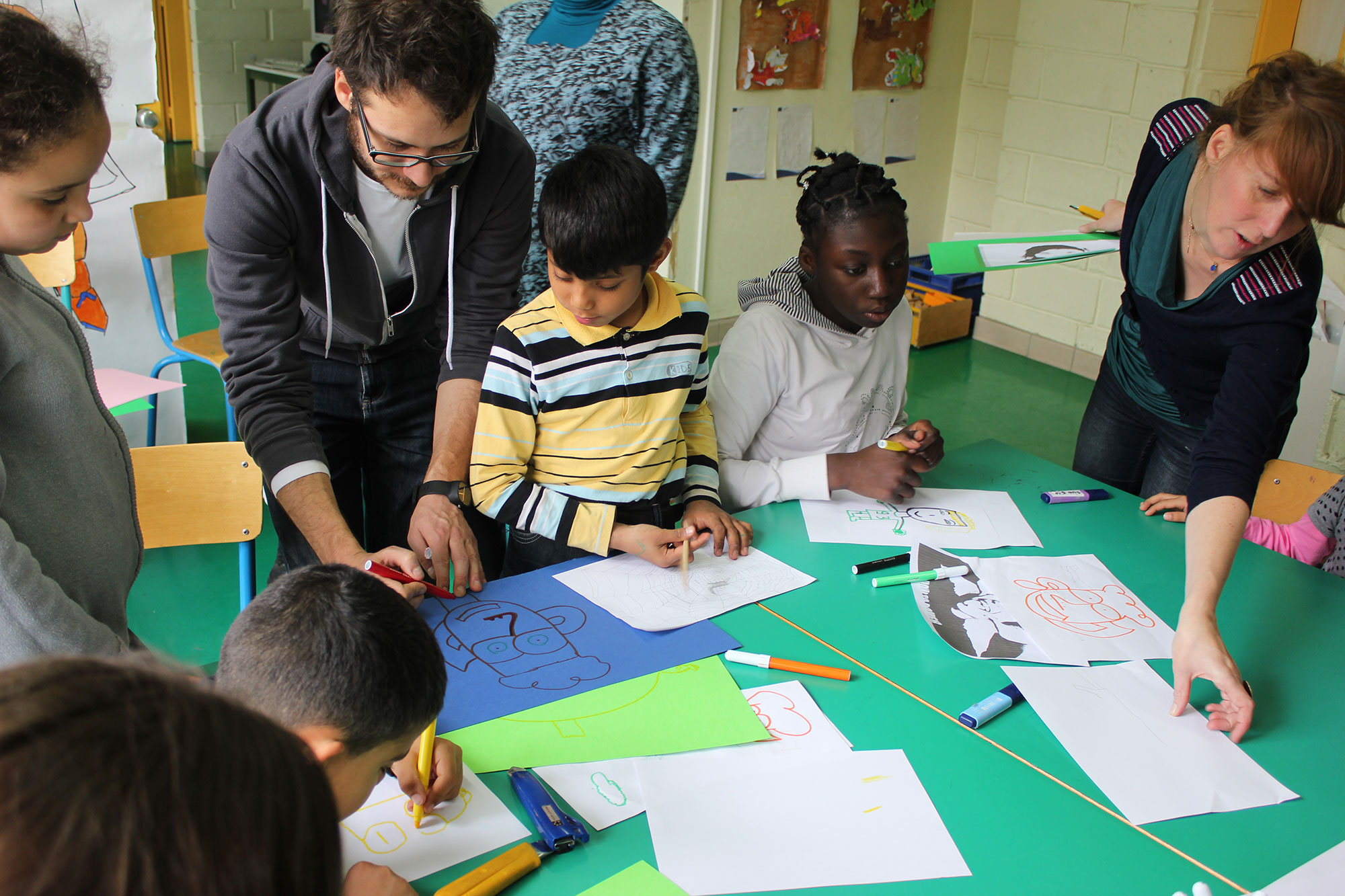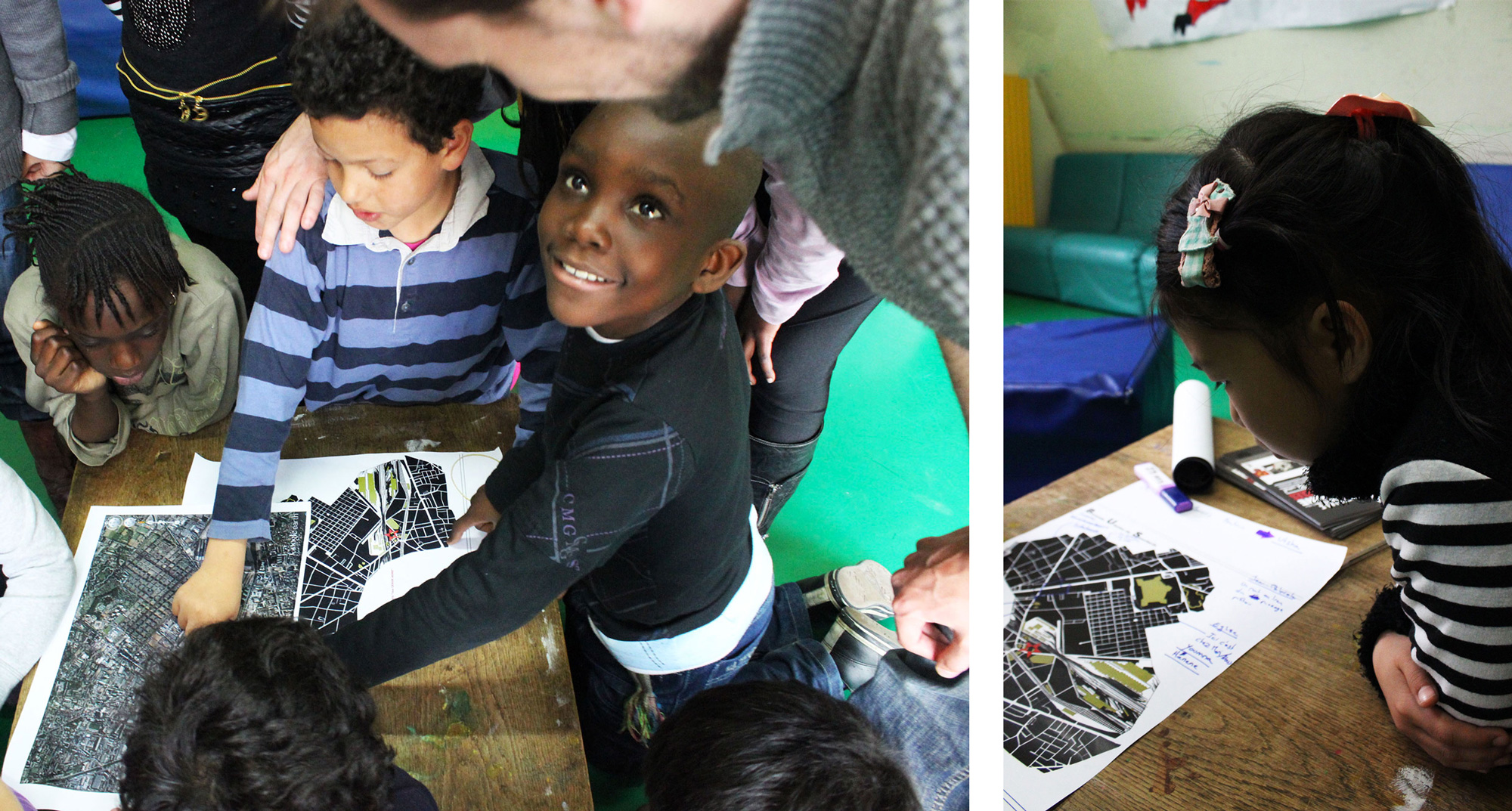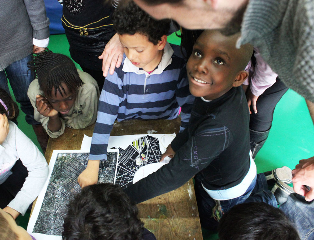 Le collectif s’est agrandi le temps de deux après-midi, dans le cadre d’ateliers participatifs avec les enfants du centre de loisirs de Pantin : Mon quartier, ma ville : habiter et jouer!