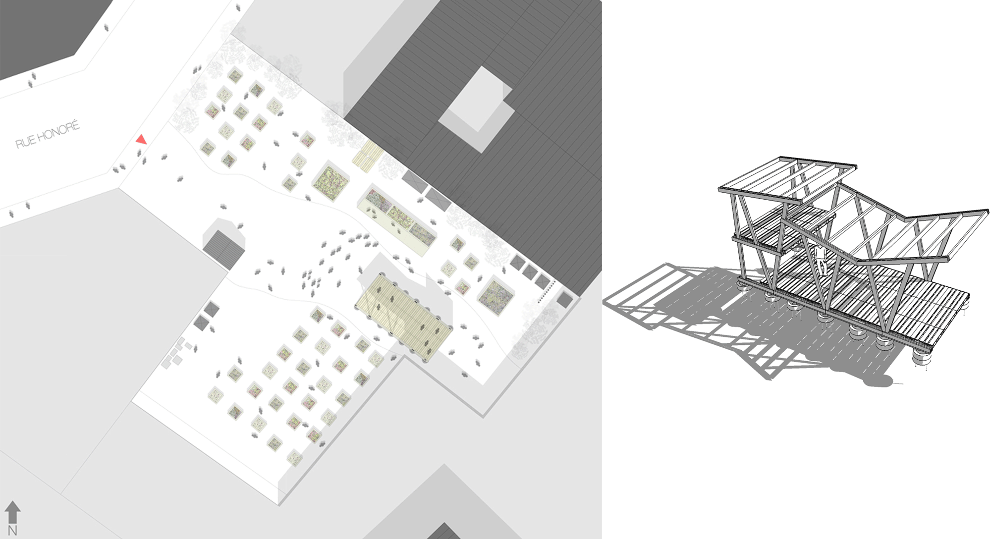 Au 20 rue Honoré, l’association dispose d’un terrain de 780m2 pour un minimum de 3 ans. Début 2013, l’association a fait appel à S+A pour l’aménagement du terrain et l’animation de chantiers participatifs au printemps et été 2013.