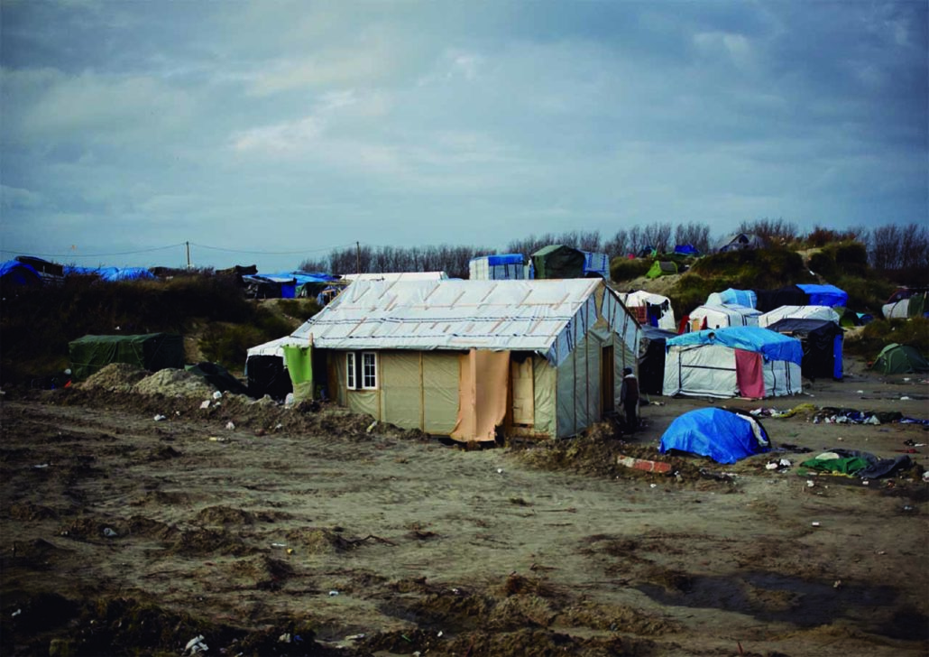 Dans le cadre de l’exposition Constellation.s organisée au Centre d’Architecture Arc en Rêve à Bordeaux en 2016, le PEROU expose le fruit de son travail autour de la New Jungle de Calais avec une scénographie signée Malte Martin. Pour l’occasion le collectif réalise une installation.